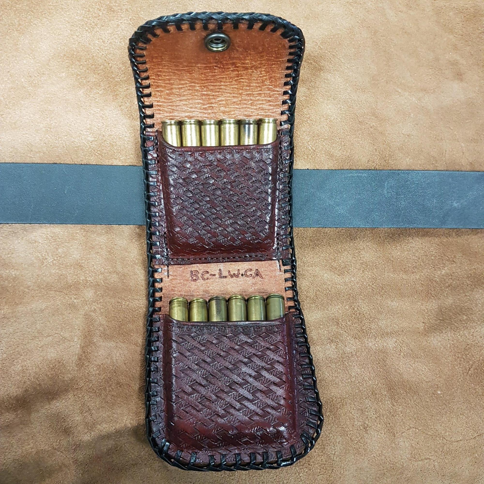 Are You Tired Of Searching Threw Your Pockets For Your Cartridges We Have The Solution For You. Custom Made With A Full Grain Leather With Hand tooled Design. Hand Made in the Okanagan, Oliver, B.C., Canada.
